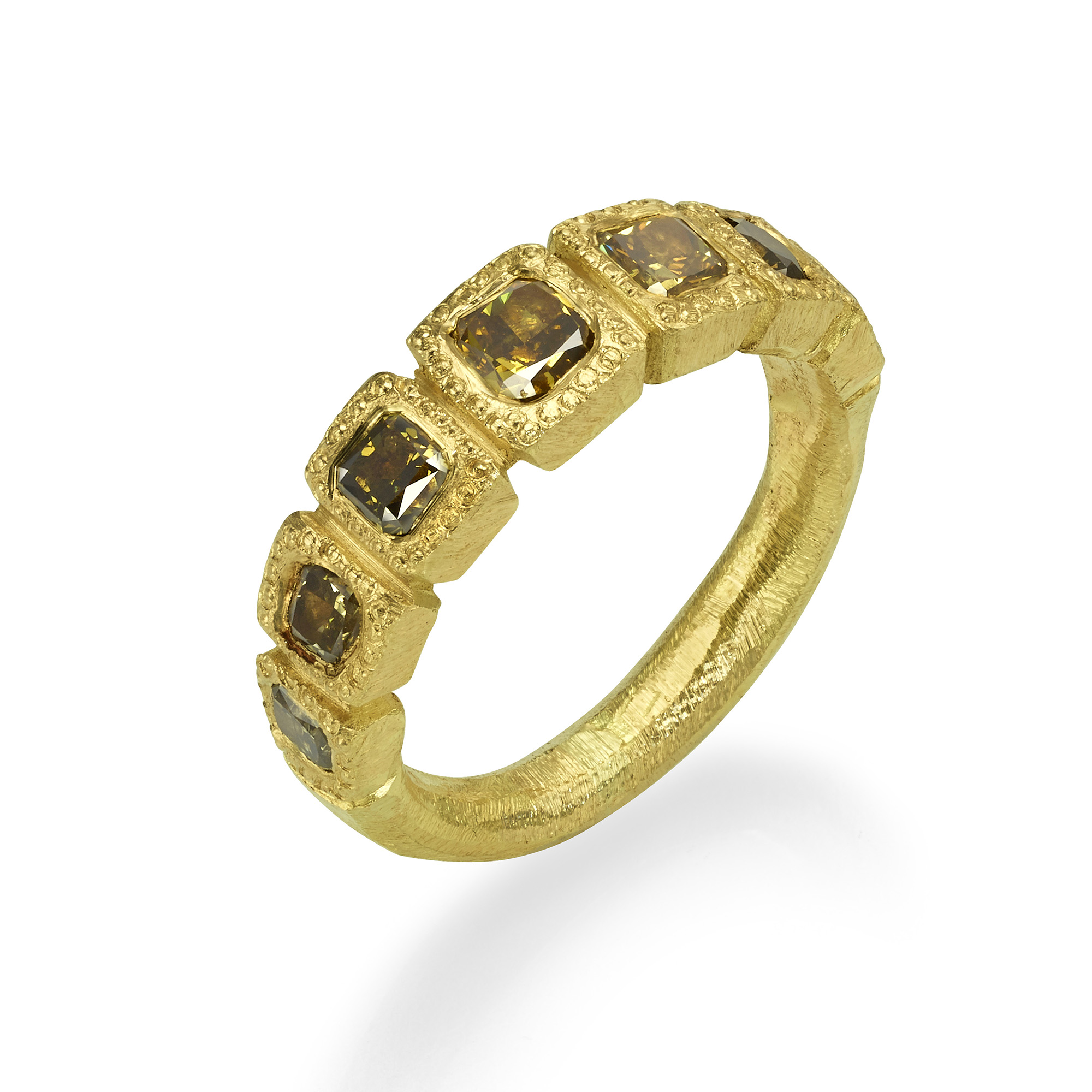 טבעת זהב 18 קראט בשיבוץ יהלומים ירוקים