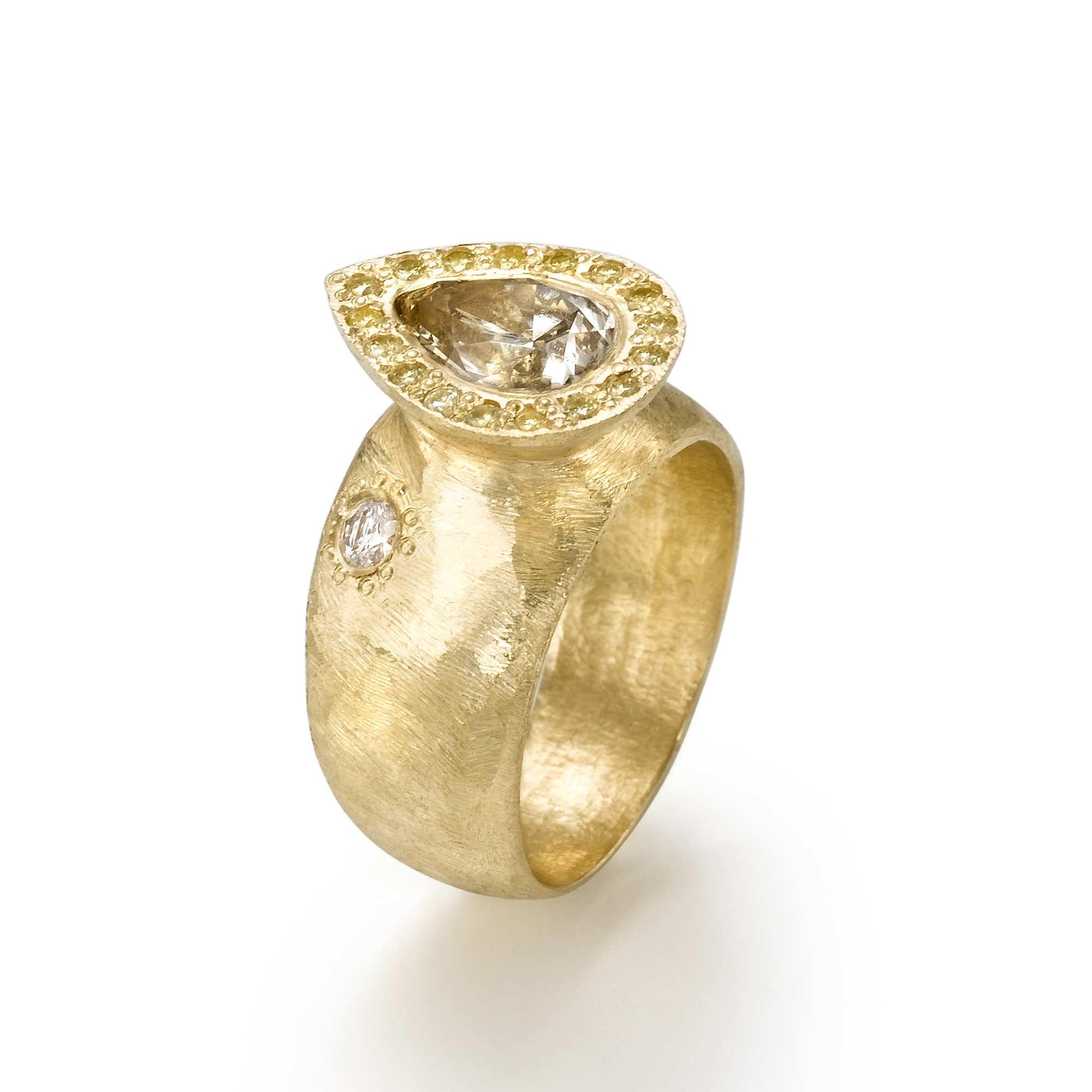 טבעת חותם זהב 18 קראט טיפה עם יהלום לבן פראי