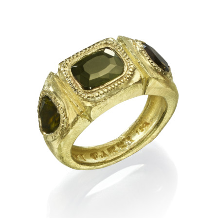 טבעת חותם זהב 18 קראט בשיבוץ אבני טורמלין