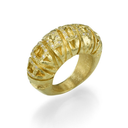טבעת חותם זהב 18 קראט חריצי ריבועים
