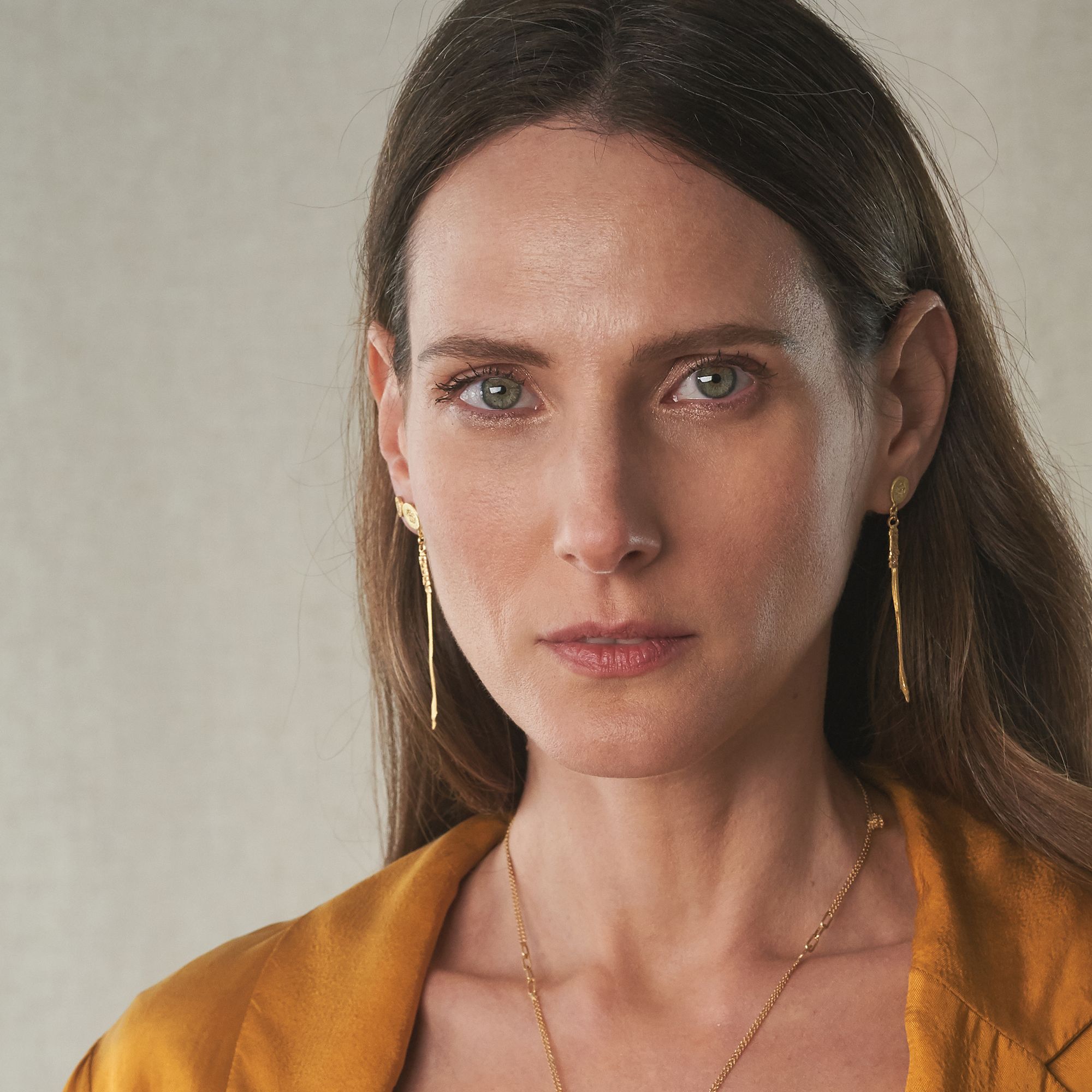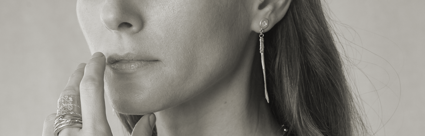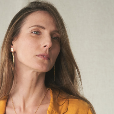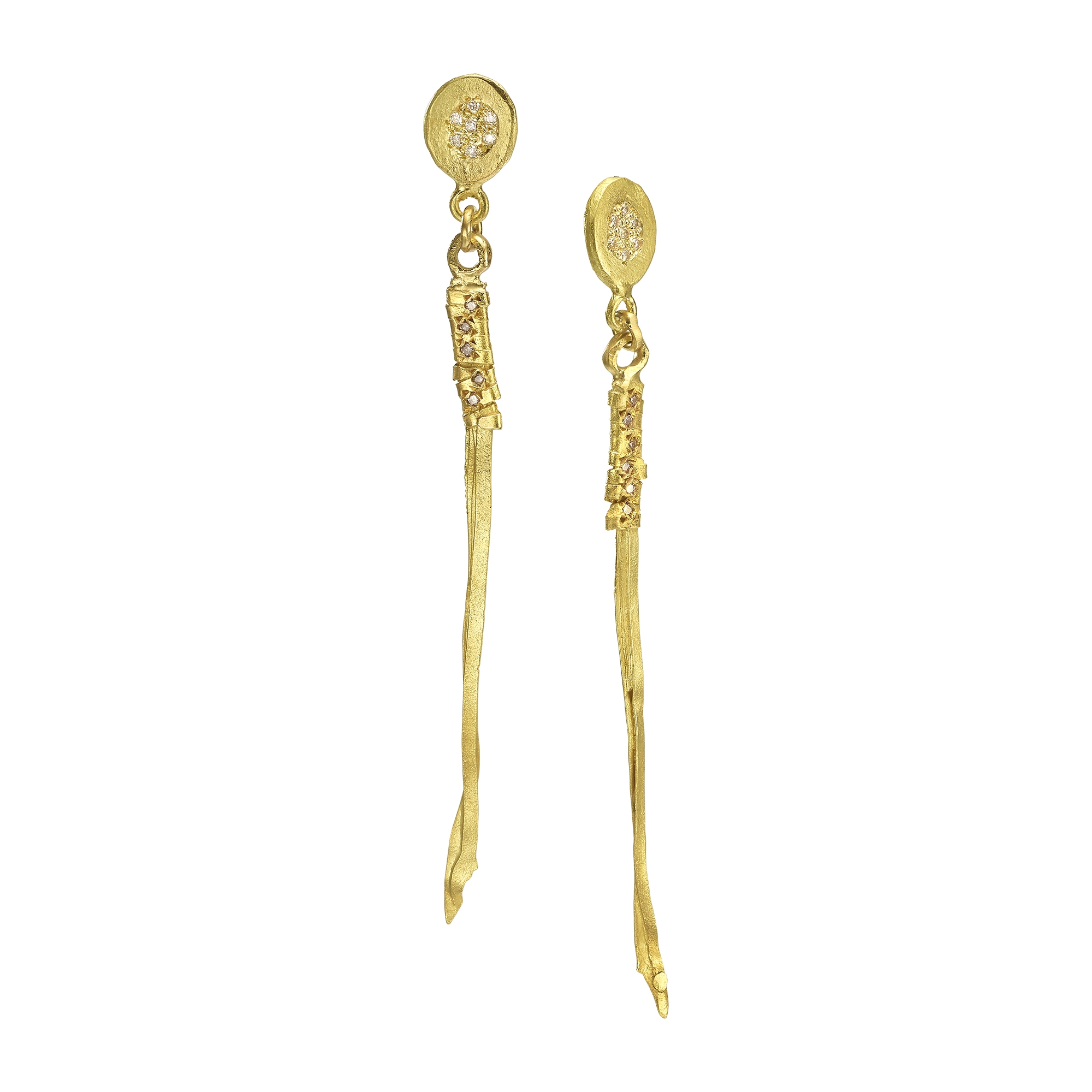 עגילים צמודים זהב 18 קראט עם תליון שזור צר