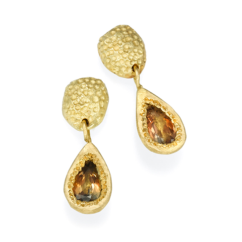 עגילים צמודים זהב 18 קראט עם תליון משובץ אנדלוסייט