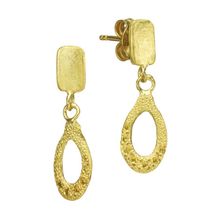 עגילי זהב 18 קראט עם תליון טיפה פתוחה משובצת