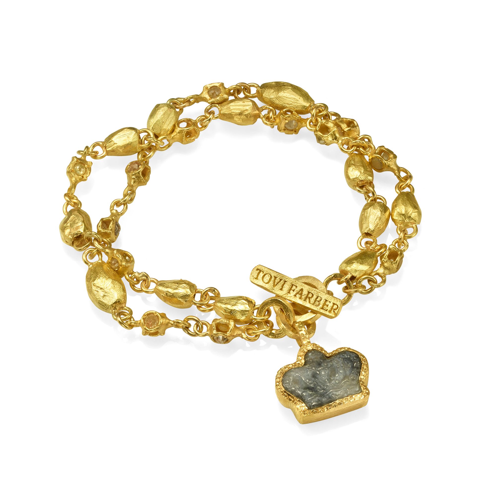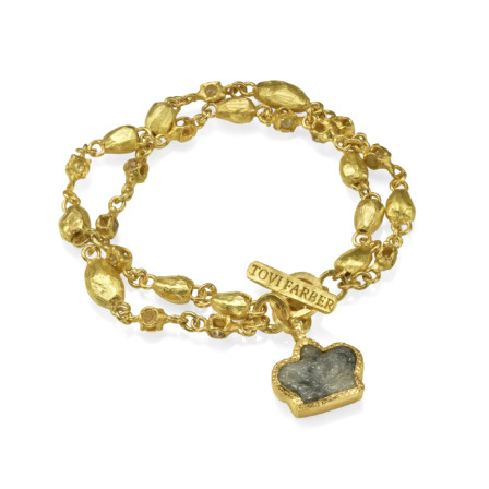 צמיד חרוזי זהב 18 קראט עם תליון ג'ייד