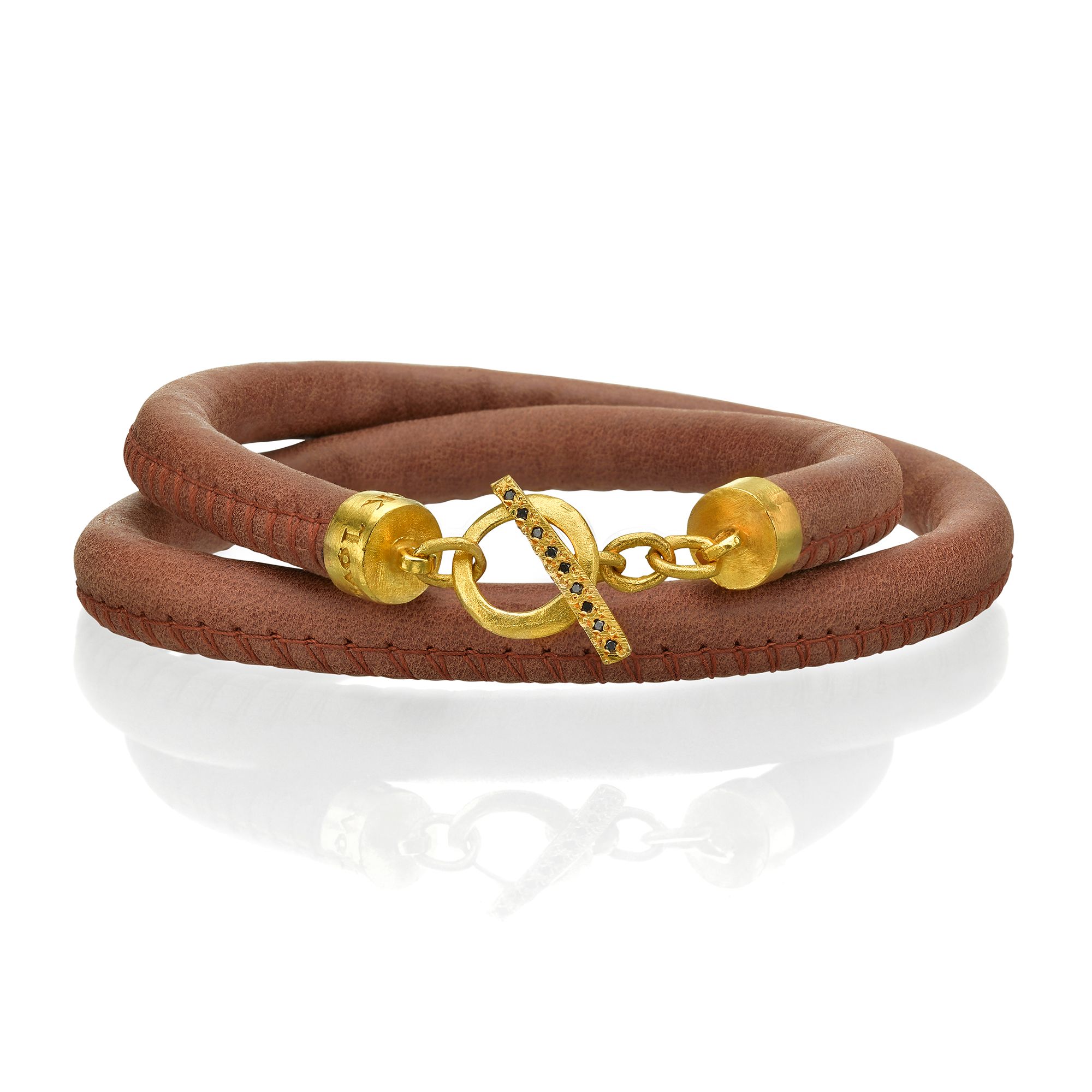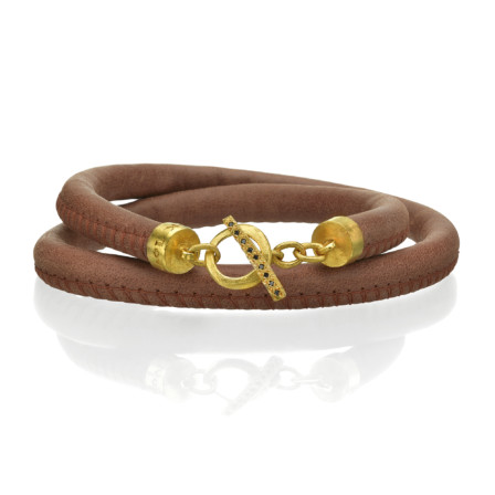 צמיד עור עם סוגר זהב 18 קראט
