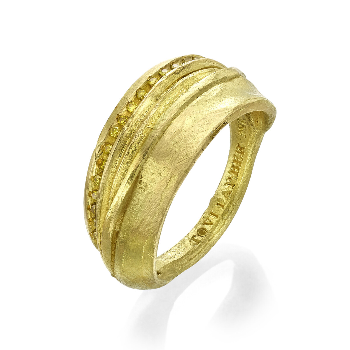 טבעת חישוק גומות זהב 18 קראט בשיבוץ יהלומים צהובים