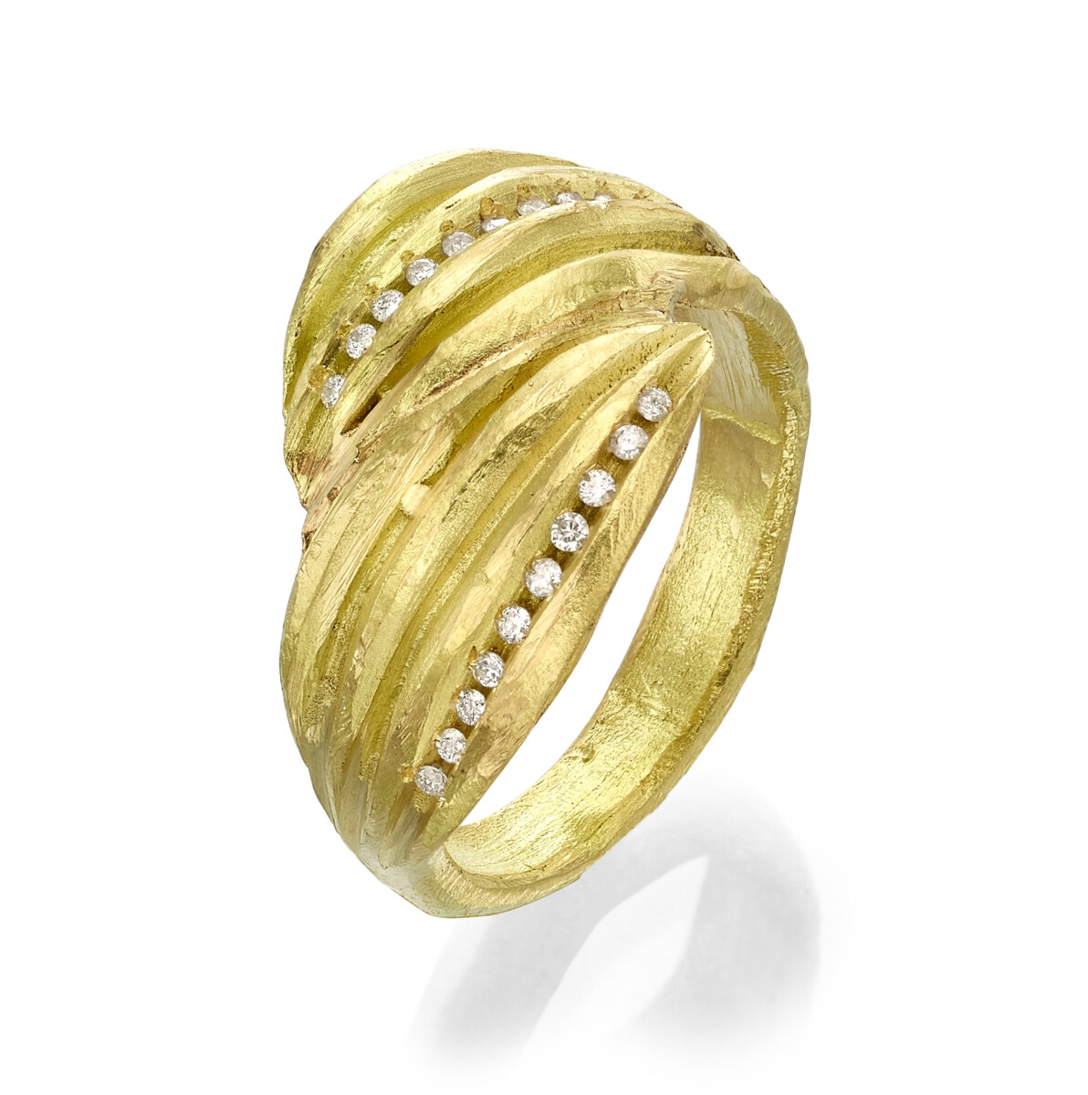 טבעת זהב 18 קראט בשיבוץ יהלומי שמפניה