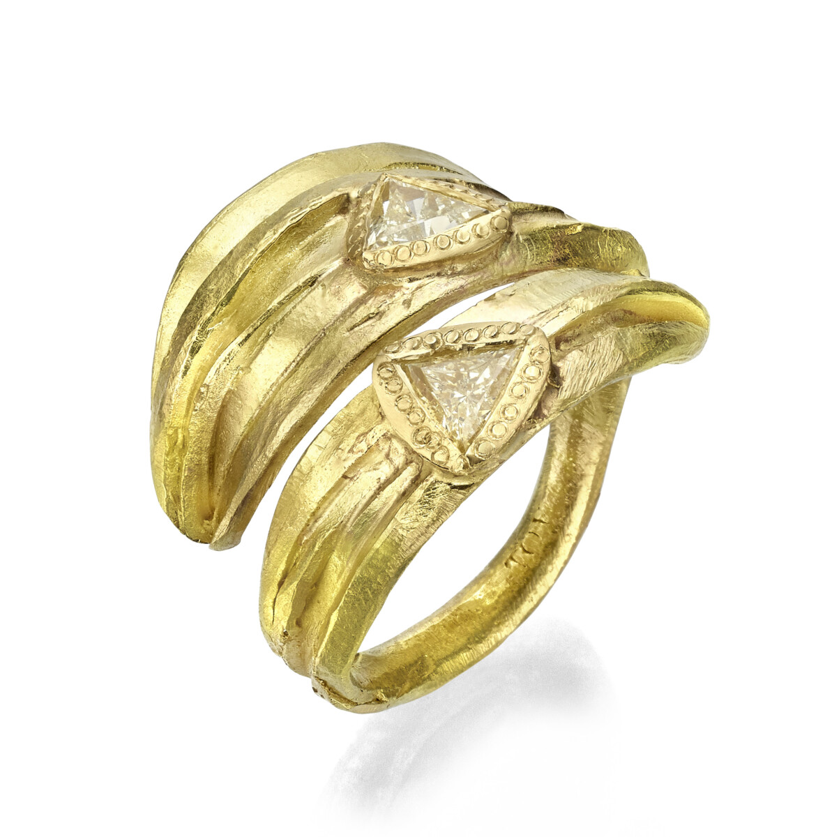 טבעת מעטפת פתוחה זהב 18 קראט בשיבוץ משולשי יהלומים צהובים