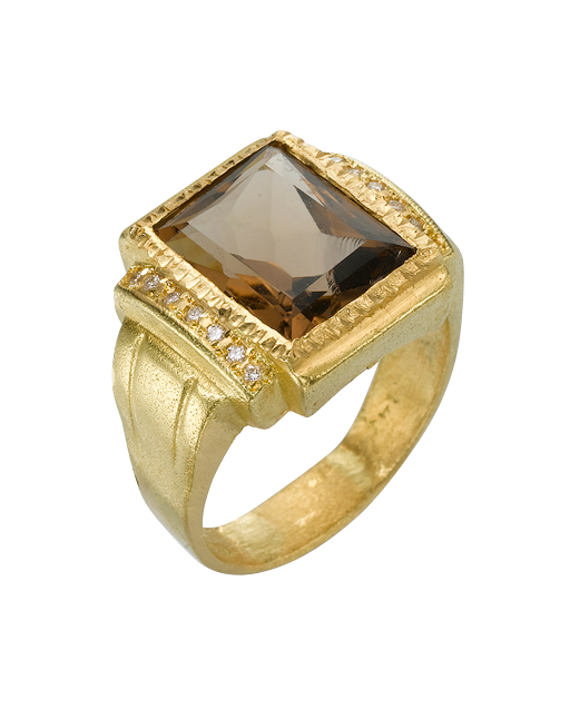 טבעת חותם זהב 18 קראט בשיבוץ סמוק קווארץ