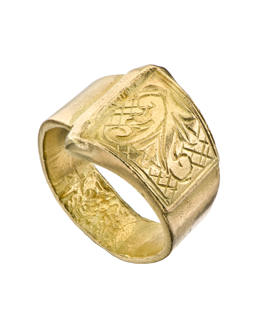 טבעת חותם זהב 18 קראט עם חריטה בעברית עתיקה