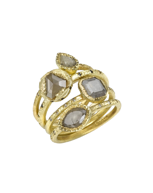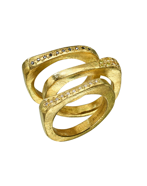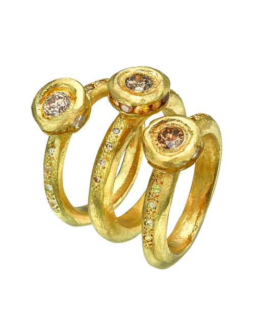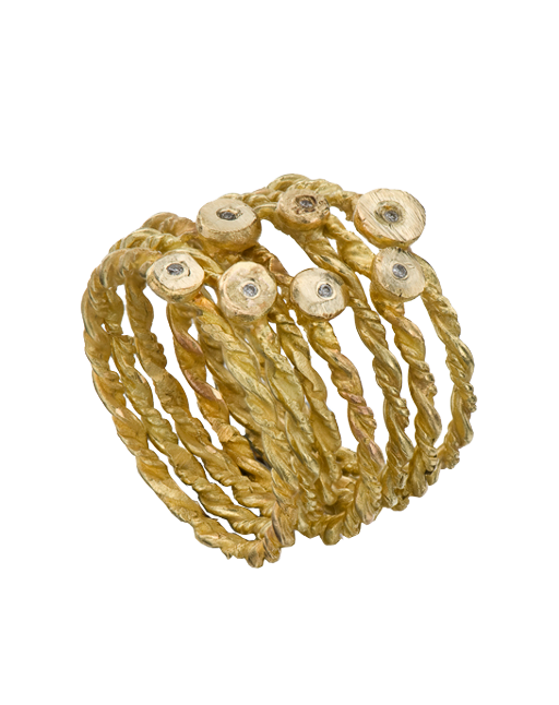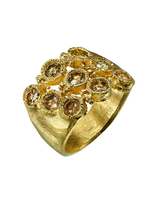 טבעת זהב 18 קראט בשיבוץ יהלומי שמפניה