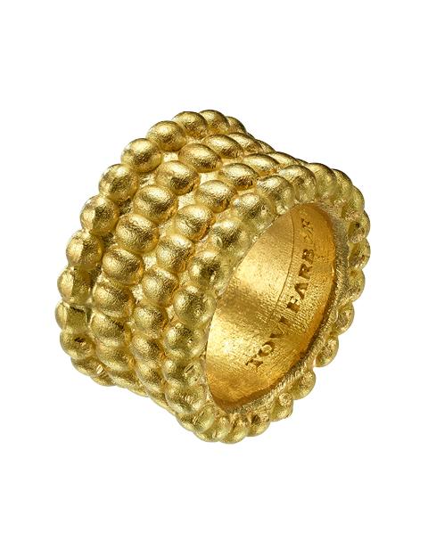 טבעת גומות רחבה זהב 18 קראט