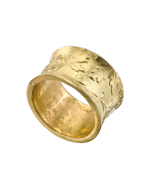 טבעת חותם זהב 18 קראט בטקסטורת עלים