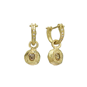 עגילי חישוק קטנים זהב 18 קראט עם תליון עגול