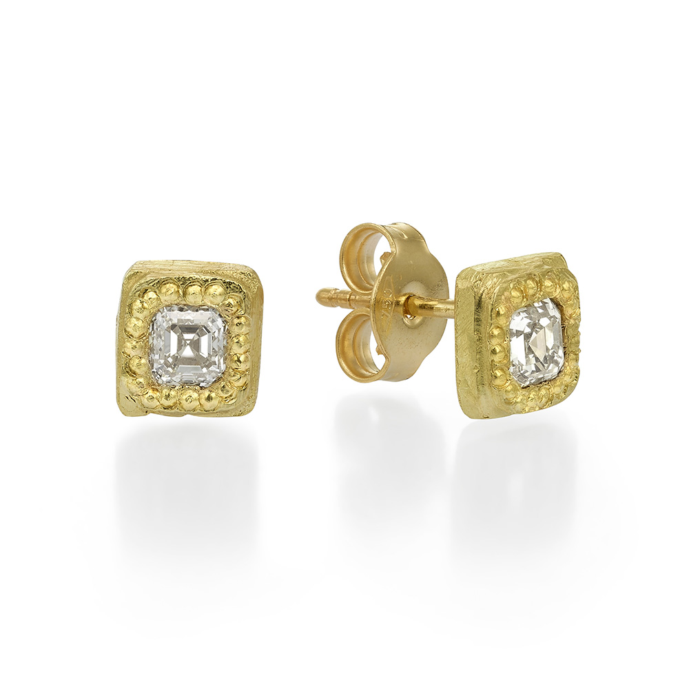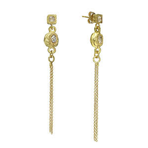 עגילים צמודים מרובעים זהב 18 קראט עם גדילים