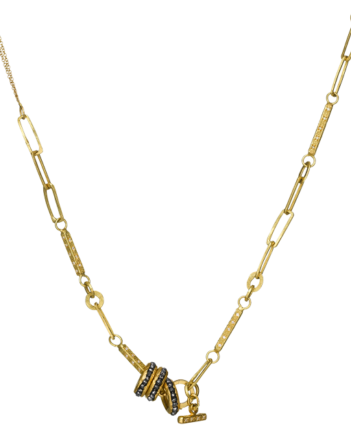 שרשרת זהב 18 קראט עם טבעות משובצות