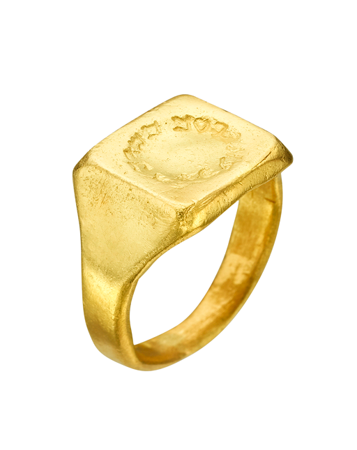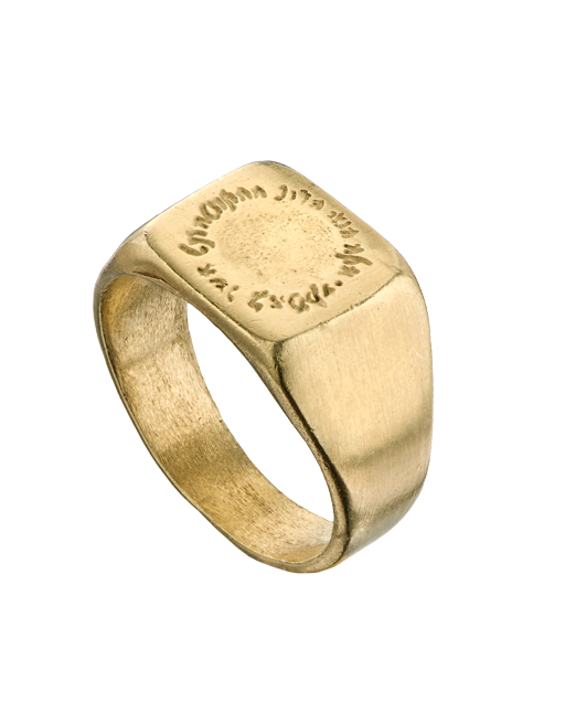 טבעת חותם זהב מרובעת 18 קראט עם כיתוב