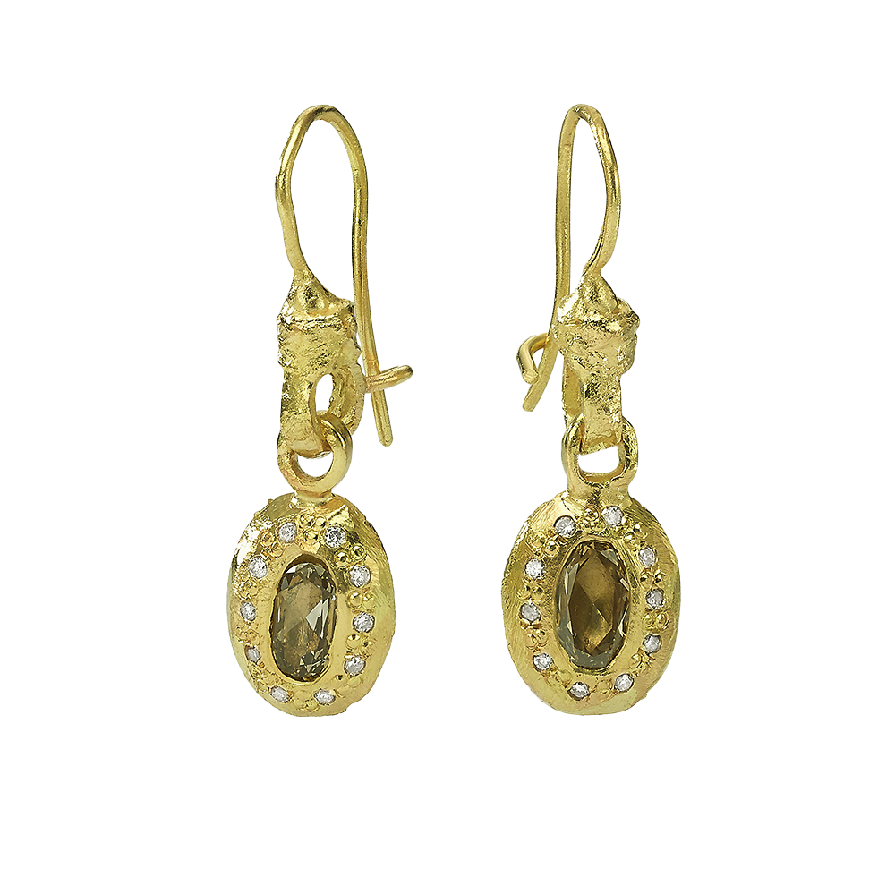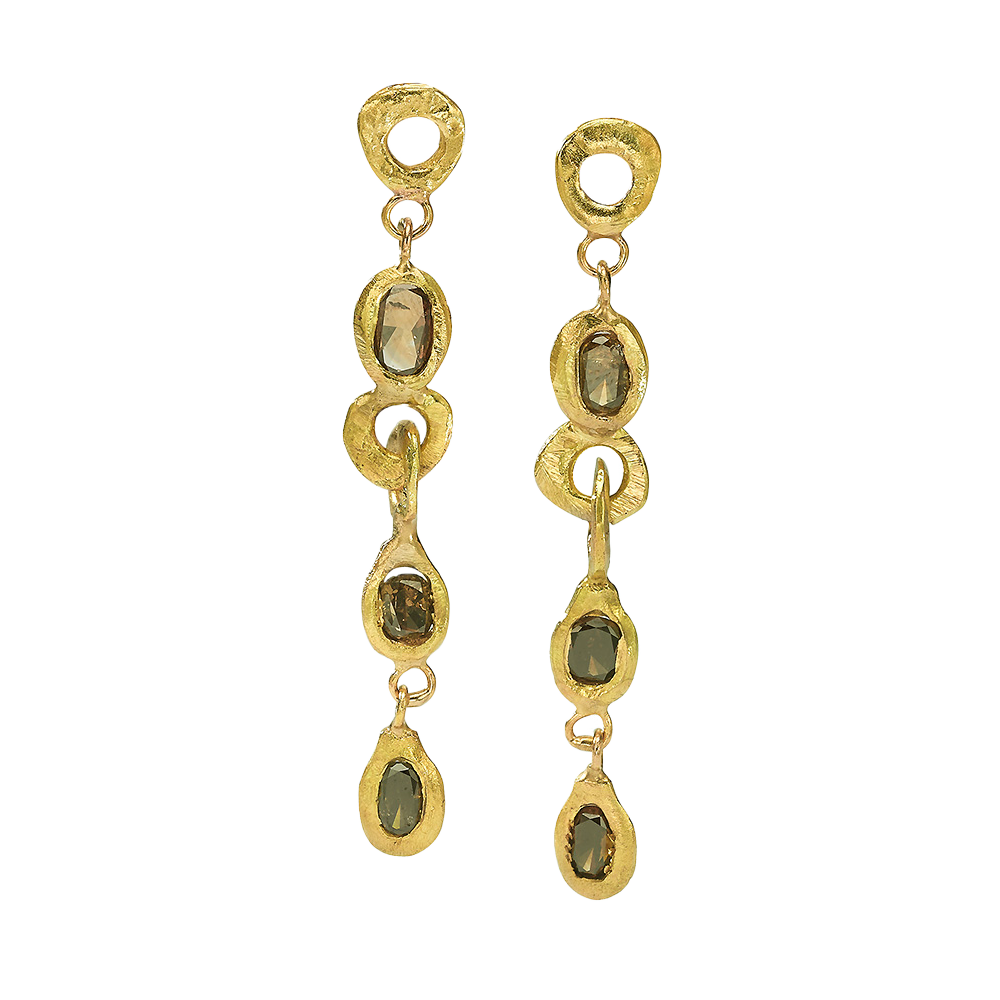 עגילים תלויים אובליים זהב 18 קראט עם פרוסות יהלומים