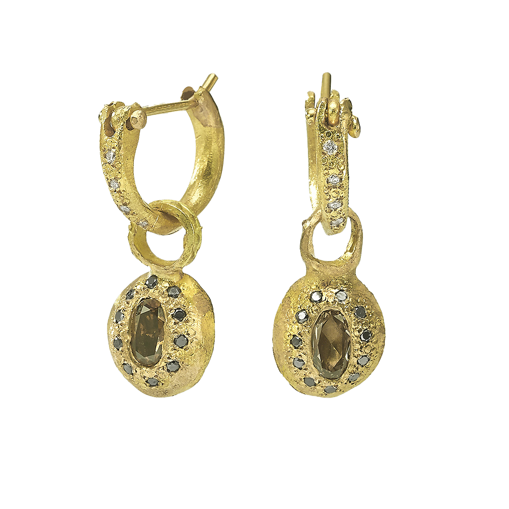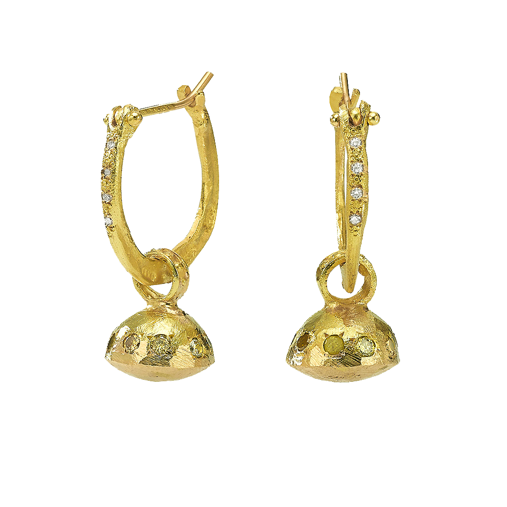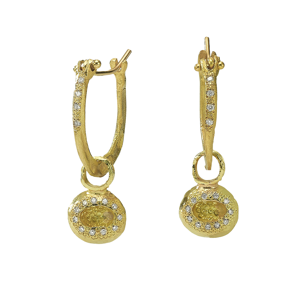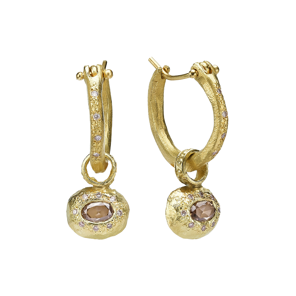 עגילי חישוק גדולים זהב 18 קראט עם תליון יהלום שמפניה
