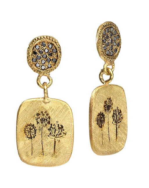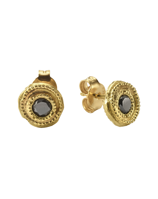עגילי זהב 18 קראט בשיבוץ יהלום שחור