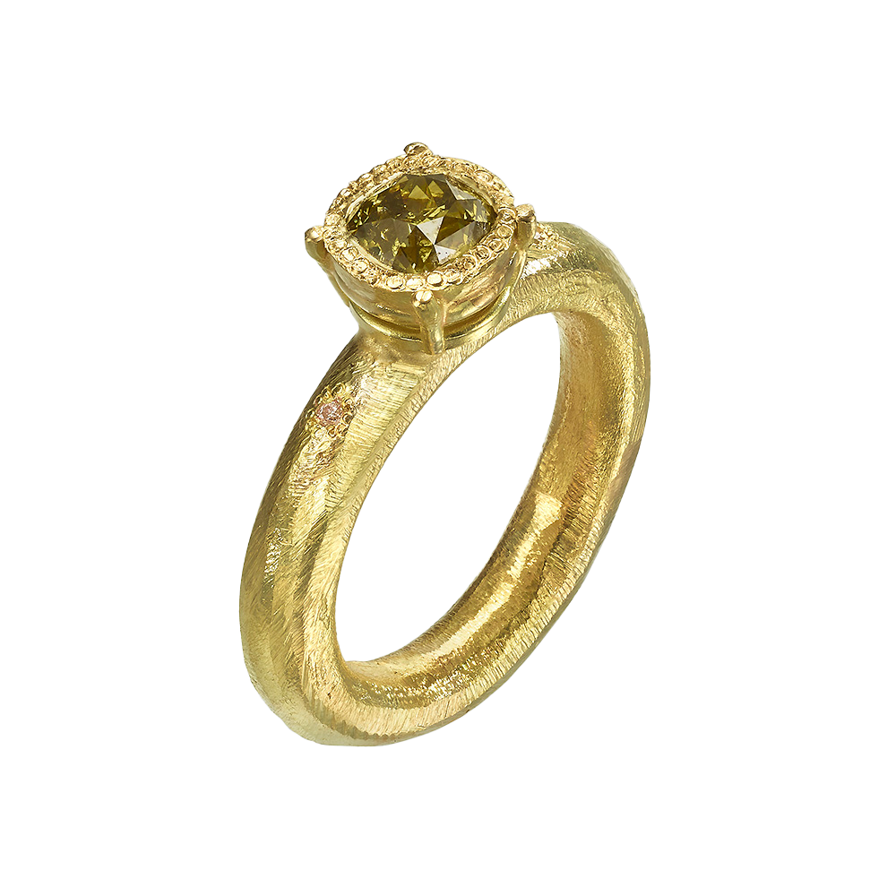טבעת חישוק עבה זהב 18 קראט עם יהלום צבעוני
