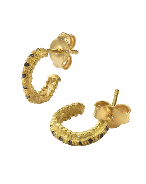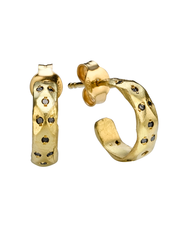 עגילי חישוק זהב 18 קראט משובצים בעיטור נקודות
