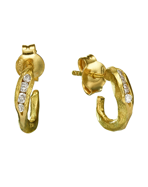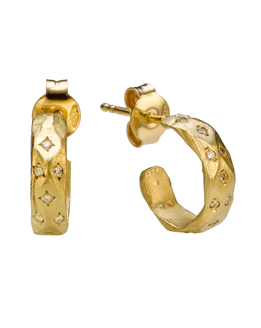 עגילי חישוק זהב 18 קראט בטקסטורת מעויינים