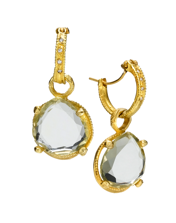 עגילי חישוק זהב 18 קראט עם תליון למון קווארץ