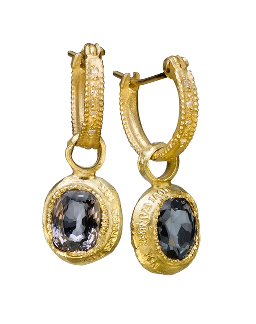 עגילי חישוק זהב 18 קראט עם תליון ספינאל