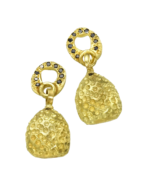 עגילים צמודים זהב 18 קראט עם תליון מפוסל